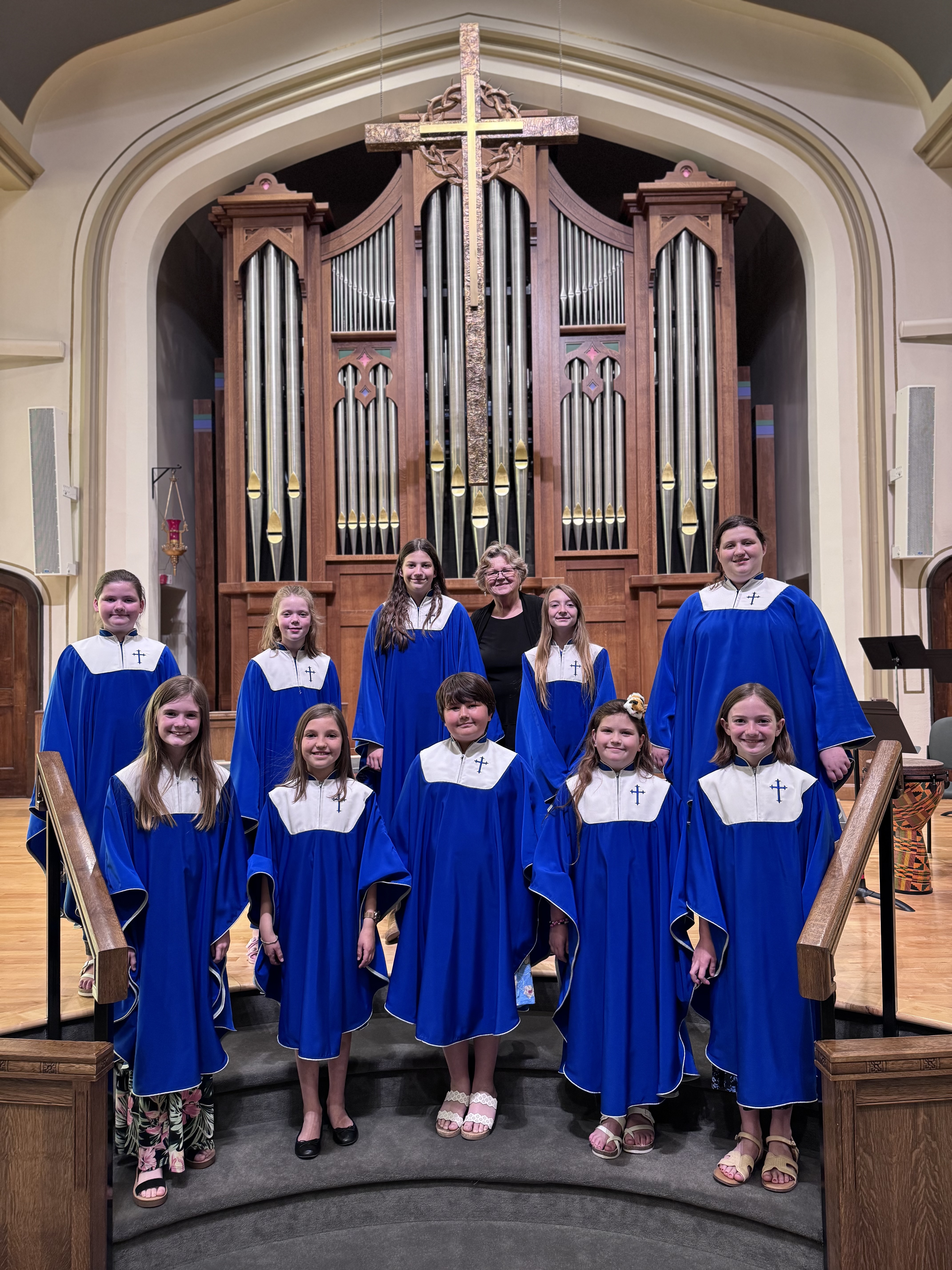 Students who have just completed K-2nd grades come from 9:00 to 11:30am each morning, and students who have just completed 3rd-6th grades attend from 9:00am till 2:30pm each day (lunch provided). Each day is filled with musical exploration: musical games, singing, handbells… and lots more!